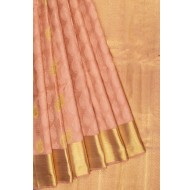 Madhurya brings to you this beautiful Kanchipuram saree directly from the looms of Kanchipuram. The saree is in nude pink and gold color. The saree looks heavy yet can easily be draped and carried. This traditional art piece is sophisticated in look.