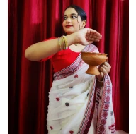 Beautiful cotton rich saree with Assam inspired phool boota motifs.