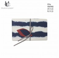 Beautiful hand design white and blue stripes paper with beige ribbon leaves, the gift box.