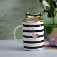 Enjoy your morning tea or coffee in style with this cute and chic glossy ceramic mug. The lid is rustic gold with a bow on top for that quirky and adorable finish. Grab it, gift it, serve it, love it, we guarantee that you just won't get enough of it!