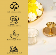 PRODUCT CONTAINS: Phool diya batti, gol batti, round cotton wicks for Pooja, MATERIAL: 100% Cotton, COLOR: White / Safed