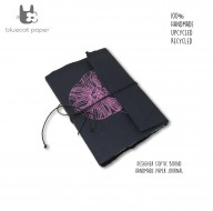- Dark grey Coptic edge book with jacket, Deckle edge white papers, 160 pages, bright pink flower print, dark grey crochet thread tie-up.