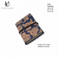 - Blue Coptic bind A6 notebook with jacket, fine cut white papers, 160 pages, orange rhino print, dark grey crochet thread tie-up.