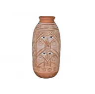 - This is a terracotta flower vas with handcrafted two tribal lady faces design.