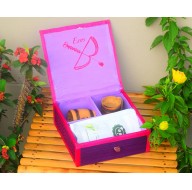 Greek god of love. The gift set is a curated bamboo box with handmade bamboo teacups engraved with the symbol of Eros and a pack of bamboo tea with a bamboo measuring spoon.
