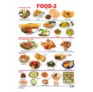 Beautifully designed ‘Food – 2 Educational Wall Chart’ has colourful pictures of a variety of food items that include various varieties of vegetarian, non-vegetarian, seafood, and sweets with their names written underneath.