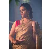 Madhurya presents a stunning Golden Tissue Silk Chanderi Saree. Highlighted with fuchsia piping at the edges and adorned with metallic tassels on the pallu, this saree features a beautifully detailed border and pallu. Elegant and goddess-like, it's perfect for any special occasion.Madhurya presents a stunning Golden Tissue Silk Chanderi Saree. Highlighted with fuchsia piping at the edges and adorned with metallic tassels on the pallu, this saree features a beautifully detailed border and pallu. Elegant and goddess-like, it's perfect for any special occasion.