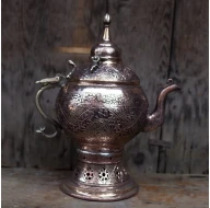 A samovar (Kashmiri: samovar) is a traditional Kashmiri kettle used to brew, boil and serve Kashmiri salted tea (Noon Chai) and kawa. Kashmiri samovars are made of copper with engraved or embossed calligraphic motifs. ... Inside a samovar there is a fire container in which charcoal and live coals are placed.