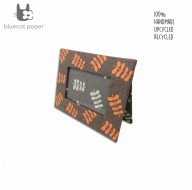Handmade Photo frame – coffee brown, orange and cream white twig leaf print.