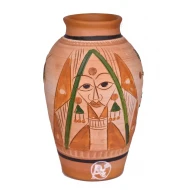 - This is a terracotta flower vas with handcrafted colourful ganesh design.