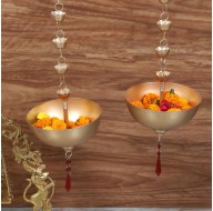 A Hanging Gold Bowl Urli With Beads Set of 2 is perfect to decorate your home & Office this festive season , it can be used to gift your loved ones