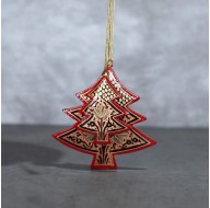Hanging Paper Mache X-mas Tree Set of 3 - A festive set of three hanging Christmas tree paper mache decorations, perfect for holiday decor.