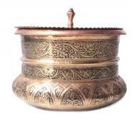 The process of making copper goes through many artisans who are specialized in a particular technique. The process involves Khar ? the smith, Naqash ? the engraver, Zarcod ? the gilder, Roshangar ? the polisher, and Charakgar ? the cleaner or finisher. In fact, specific localities or Mohallas like Roshangar-Mohalla are named after these professions, where these artisans still carry out their craft practice. The age-old art of crafting copperware is deep-rooted in the culture here and is famous all over the world. The craftsmanship of Kashmir is known for the work of engraving and making household and decorative products from copper including utensils like Lota (pot), Tream (plate), Naer (water jug), Tash-Near (portable handwash), dishes, bowls, trays, vessels,haandi, Lamp Shades and many more and the most famous being Kashmiri ?Samovar?- a traditional tea container or large cattle.