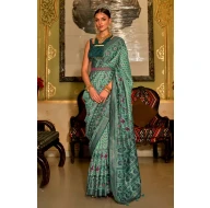 Name: Light Green Colour Printed Patola Silk Saree with Blouse Piece