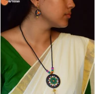 Theme Terracotta Jewellery Brand The Artisian Colour used Multi Style Ethnic Occasion Any Occasion Ideal for Women , Girls Material used Clay Making Hand Made and Hand Painted Package Contains 1 Necklace , 2 Earrings