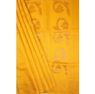 Madhurya presents this mustard yellow Jamdani Bhagalpuri matka silk saree featuring golden zari motifs woven in the body and pallu. This saree has no border and a dream to drape and the handloom silk is also very comfortable to wear for long durations.