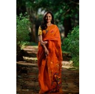 Radiate elegance with this stunning Orange Jamdani Saree, a masterpiece of heritage weaving and vibrant craftsmanship. Handwoven in soft muslin, this saree exudes traditional charm while offering breathable comfort.