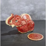 Paper Mache Coaster Set Elephant Design Red Colour
