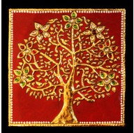 The divine tree of Parijat was known to have several healing qualities in it. This Tanjore painting beholds the beauty of nature.