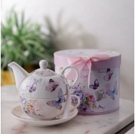 Pretty Butterflies Kettle, Teacup & Saucer Set