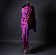 An exemplary Silk Saree has been immensely crafted ?skillfully to become an epitome of elegance for the women who would love to keep their dressing styles in culture and tradition This Saree is a mixture of Tussar Silk with the shimmery Zari and Aari Embroidery of Kashmir The dark Colour Silk base plays home to two simultaneous borde complimenting each other being the two age old crafts of thread work of the Valley Drape this traditional symbol of epitome, style and art and let everyone get hanged when you walk around wearing this masterpiece