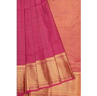 Drape yourself in timeless elegance with our purplish magenta Kanchipuram handloom silk saree. The broad gold zari border is intricately woven, showcasing meticulous craftsmanship. The entire saree is beautifully textured, with lotus motifs woven in gold zari along the border.Timeless Elegance: Adorn yourself in our purplish magenta Kanchipuram handloom silk saree, embodying timeless grace.