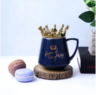 Enjoy your morning tea or coffee like the queen that you are with this chic shaped glossy ceramic mug. The lid is a golden crown because that is what you deserve. So fuel up, wear that crown with pride and go on and conquer the day. Top of the morning to you, Your Majesty!