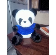 PANDA SOFT TOYS IS MADE OF RABBIT FUR FABRIC AND IT IS WASHABLE PRODUCTS. IT'S WEAR T -SHIRT AND WE CAN MAKE THE LOGO ON IT.