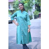 Sea Green And Gold Cotton Silk Jacquard Kurti
