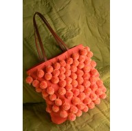 Introducing our cotton orange tote bag, decorated with pink pom-poms on the front and featuring organic leather handles. Cute, smart, and unique, it's perfect for girls of all ages. This stylish bag combines fun design with practical use, making it ideal for any occasion.