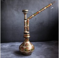 Our sculpted motifs of papier mache are no less than souvenir. They have been made by the craftsmen using the right materials and hand painted. A craftsman used paper and glue to mould out the sculpture and form it into an object. A finished Papier mache product is made up of pieces of paper or pulp that are often reinforced with cloth or other materials and bonded together with an adhesive paste. These are glazed to keep them shiny and protected. Our exciting range of Papier Mache products includes a variety of arts, from fine art sculptures to pinatas and kids' crafts.This handcrafted hookah is a souvenir cum d??cor item to add a little art and beauty to your interior. The artisan has worked hard to bring out something from an ordinary metal (brass) and has enhanced its beauty by creating beautiful designs using papier mache. The tropical pattern on golden colored surface proves the craftsman's extraordinary craftsmanship and skills. This item is perfect for you to take home or gift to your loved ones.