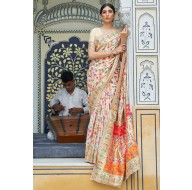 White Kashmiri Silk Wedding Wear And Party Wear Sarees Indian Rich Pallu Weaving with Blouse.