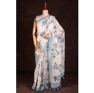 Presenting our White Linen Saree, adorned with a beautiful floral print and a striking sky blue border. The saree features stylish tassels at the end of the pallu. Perfect for summer, the breathable linen fabric drapes beautifully, offering an elegant and distinguished look that is both modern and stylish.