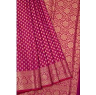 Madhurya brings to you this elegant saree in Wine color. The saree has small floral bootis in the body of the saree. The border of the saree is intricately woven in traditional bel pattern. The pallu is of the saree has floral mesh pattern filled with floral bootis. The border and pallu are adding more charm to the saree. The saree is perfect for any festival or marriage occasions. The saree comes with a brocade blouse piece.