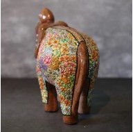Wooden Colour Embossed Paper Mache Elephant Floral Design 11 x 11